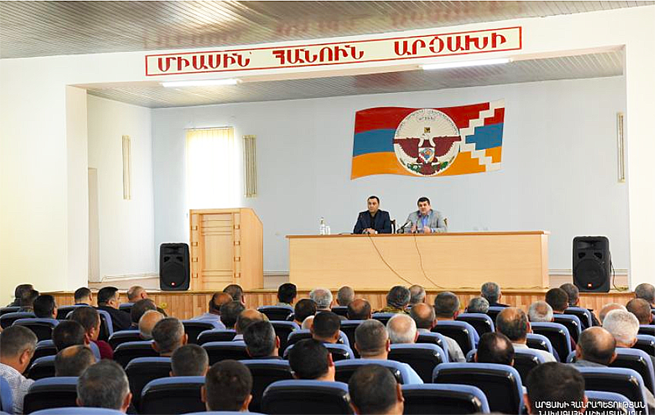 Արցախի Հանրապետութեան նախագահ Արայիկ Յարութիւնեան Ապրիլ 12-ին Մարտակերտ քաղաքին մէջ հանդիպում ունեցած է շրջանի վարչակազմի պատասխանատուներու, համայնքներու ղեկավարներու եւ բնակչութեան ներկայացուցիչներու հետ։