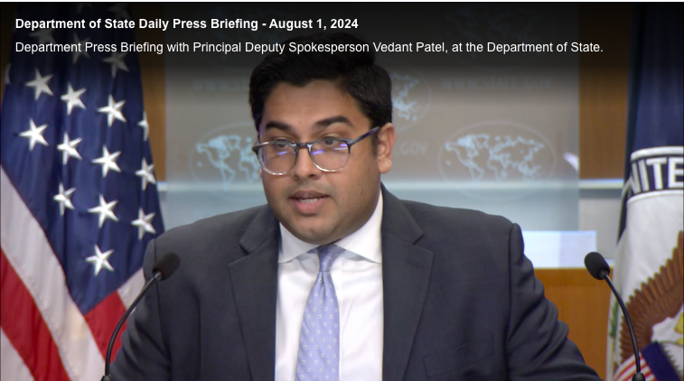 Օգոստոս 1-ին տեղի ունեցած մամլոյ ասուլիսին, ԱՄՆ-ու Արտաքին գործոց նախարարութեան բանբերի տեղակալ Վետընթ Փաթըլ՝ պատասխանելով Պաքուի մէջ բանտարկուած հայ գերիներու վերաբերող հարցումին յայտարարած է, թէ իր նախարարութիւնը եւ անձամբ նախարար էնթընի Պլինքըն կը շարունակեն ներգրաւուած մնալ հայ գերիներու վերադարձի շուրջ ընթացող աշխատանքներուն մէջ, միաժամանակ ընդգծելով, թէ այդ ուղղութեամբ նորոթիւն չունի։