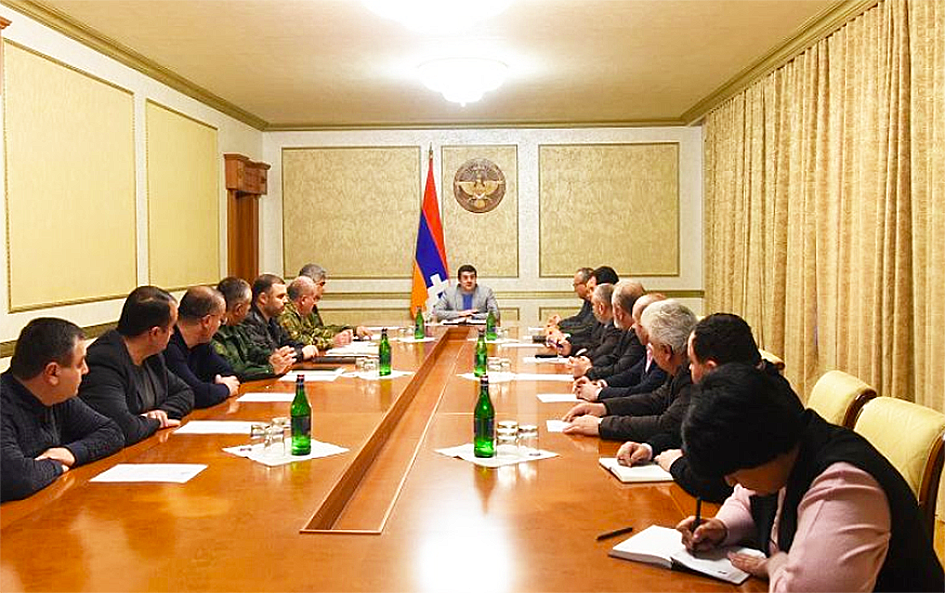 Նիստին, մարտական դիրքերու կացութեան վերաբերեալ զեկուցած է ԱՀ Պաշտպանութեան նախարար Կամօ Վարդանեան: