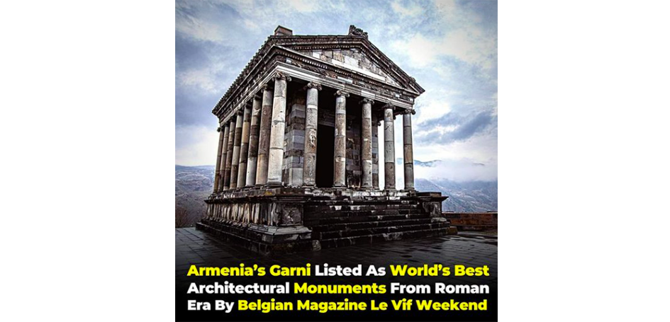 Պելճիքական ծանօթ Le Vif Weekend առցանց պարբերականը հրապարակած է Հին հռոմէական ժամանակաշրջանի (Ք.ա. 754/753 – Ք.ե. 476) ժառանգութեան վերաբերող լաւագոյն ճարտարապետական յուշարձաններու ցանկը: Ամէնէն գեղեցիկ 51 յուշարձաններու կարգին է նաև Գառնիի հայկական հեթանոսական տաճարը, որ կը գտնուի Հայաստանի Կոտայքի մարզի Ազատ գետի հովիտին մէջ։