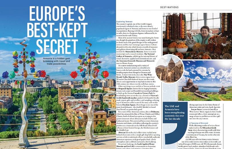 «Business Traveller Middle East» համբաւաւոր հանդէսը 2021 Հոկտեմբերի իր թիւին մէջ 7 էջերէ բաղկացած թղթածրար մը նուիրած է Հայաստանին՝ «Եւրոպայի լաւագոյնս պահուող գաղտնիքը» ընդհանուր խորագրին տակ: