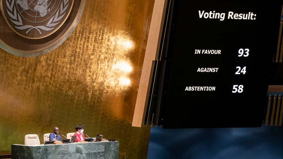 Միացեալ Նահանգներու գլխաւորած այս նախաձեռնութիւնը ստացած է 93 թեր ձայն, 24 երկիր դէմ քուէարկած է, իսկ 58-ը՝ ձեռնպահ մնացած է: