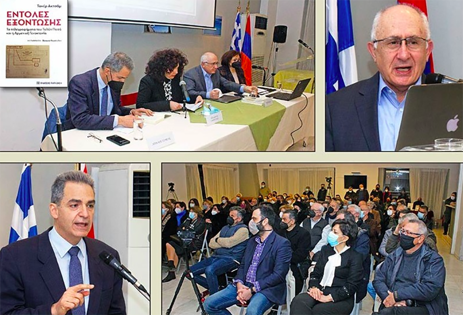 Մեր պաշտօնակից «Ազատ Օր-էն կը տեղեկանանք, թէ Հ.Յ.Դ. Յունաստանի Հայ դատի յանձնախումբին եւ «Փափազիսիս» հրատարակչատան կազմակերպութեամբ, Մարտ 21-ին, Գոքինիոյ «Զաւարեան» կեդրոնին մէջ տեղի ունեցած է Թանէր Աքչամի «Սպանութեան հրահանգներ» գիրքին յունարէն հրատարակութեան ներկայացումը։ Երեկոյթին մասնակցած է Յունաստանի Կրթութեան փոխնախարար, համալսարանի դասախօս Ակելոս Սիրիղոս։ Վերջինս անդրադարձած է գիրքին մէջ տեղ գտած փաստաթուղթերուն եւ իթթիհատական պարագլուխներուն կողմէ հրատարակուած գրաւոր հրահանգներուն, որոնք բացայայտ կերպով կ՚ապացուցանեն Հայոց ցեղապանութեան անժխտելիութիւնը եւ փաստացի իրողութիւնը։