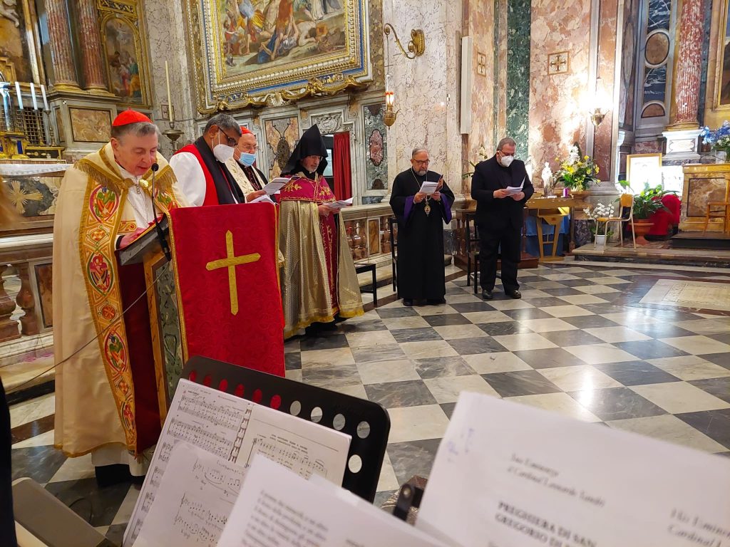 Միջեկեղեցական արարողութեան ընթացքին քարոզեց Արեւելեան եկեղեցիներու Քահանայապետական խորհուրդի նախագահ կարդինալ Լէոնարտօ Սանտրի։ Ներկաներու շարքին էին Ղպտի, Անկլիքան եւ Ողղափառ եկեղեցիներու ներկայացուցիչներ, Մխիթարեան միաբաններ, Հայ կաթողիկէ Եկեղեցւոյ Հալէպի վիճակաւորը՝ Միրիաթեան գերապայծառ, Վատիկանի մէջ հաւատարմագրուած դեսպաններ, զանազան այլ եկեղեցիներէ հոգեւորականներ, ակադեմական շրջանակներէ դէմքեր եւ հաւատացեալներ, ինչպէս նաեւ Վատիկանի Ս. Աթոռի մէջ Հայաստանի դեսպան Կարէն Նազարեան։