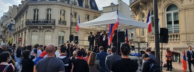Ընդառաջելով CCAF-ի կոչին՝ Կիրակի, Սեպտեմբեր 26-ի յետմիջօրէին, անձրեւոտ օդով, շուրջ հազար հոգի հաւաքուած էր Ազէրպայճանի Փարիզի դեսպանատան դիմաց, պահանջելու համար Արցախեան պատերազմին գերեվարուած հայորդիներու անյապաղ ազատ արձակումը։ Այս առթիւ խօսք առին CCAF-ի համանախագահներ Մուրատ Փափազեան, Արա Թորանեան, Հայ դատի յանձնախումբի նախագահ Ժիւլ Պոյաճեան, նաեւ ֆրանսական քաղաքական դասու պաշտօնական դէմքեր բոլոր հոսանքները ներկայացնող, ինչպէս՝ Իզապէլ Սանթիակօ (ընկերավարական), Փաթրիք Քարամ (հանրապետական), Փիէր Ուզուլիաս (համայնավար), Արթիւր Խանճեան (կեդրոն), Ալեքսի Կէօվճեան (իշխանութեան «Յառաջացող Հանրապետութիւնը» կուսակցութիւն)։ Նոյնիսկ Վան քաղաքի HDP-ական նախկին քաղաքապետ, Էրտողանի վարչակարգին կողմէ պաշտօնազրկուելէ ետք Ֆրանսա աքսորուած Վեյսէլ Քեսեր ներկայ էր ու խօսք առաւ, դատապարտելով թրքական մեղսակցութեամբ կատարուած յարձակումը, մարդկային իրաւունքներու կոպտագոյն խախտումները, խստօրէն պարսաւեց Էրտողանի Թուրքիոյ արկածախնդրութիւնները Սուրիոյ մէջ։ Յիշեց նաեւ Վանի մէջ թրքական իշխանութիւններու վայրագութիւնները եւ պատմամշակութային արժէքներու հանդէպ անոնց անտարբերութիւնը եւ ցեղասպանութեան ժխտումը… ■
