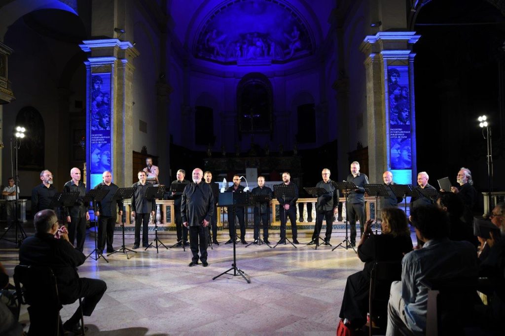 Հետաքրքրականօրէն, թուականներով գրեթէ զուգադիպող երկու փառատօներու ղեկավարները, հանրածանօթ երգչխմբային խմբավար ու երգահան՝ Լորենցօ Տոնաթի եւ աշխարհահռչակ դաշնակահար՝ Ռոպերթօ Փրոսսետա, որոնց հետ բազմիցս գործակցելու առիթը ունեցած է մեր Կեդրոնը, դիմում կը ներկայացնեն այս տարուան ծրագրին մէջ ներառելու հայ հոգեւոր երաժշտութիւնը եւ մեր առաջարկ-ընտրութիւնը կ՚ըլլայ՝ Հայաստանի Պետական սենեկային երգչախումբը, բացառաբար սակայն արական համոյթի իր կազմով, որպէսզի ներկայացուի Կոմիտասի մշակած Պատարագի առաջին՝ արական կազմի տարբերակը։ Ինչ որ, խմբերգային ու մենակատարներու բարձրորակ երգեցողութեամբ մեծապէս տպաւորեց երգչախմբային ու հոգեւոր երաժշտութեան վարժ այս երկու փառատօներու ունկնդիրները, որոնք քար լռութեամբ եւ առանց ծափահարութեան ընդմիջումներու հետեւեցան Պատարագի ամբողջական կատարումին։