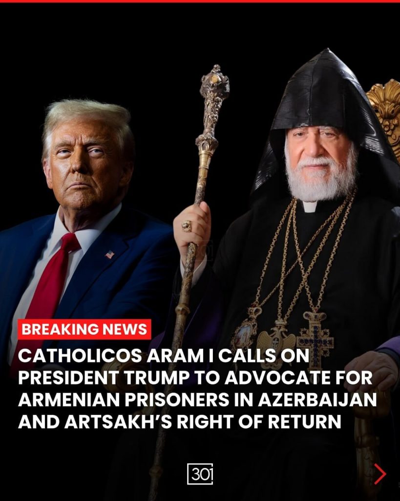 Le Catholicos Aram Ier de la Grande Maison de Cilicie a adressé une lettre le 6 février au président élu des États-Unis, Donald Trump, lui demandant d’intervenir dans la question de la libération des otages arméniens illégalement détenus à Bakou.