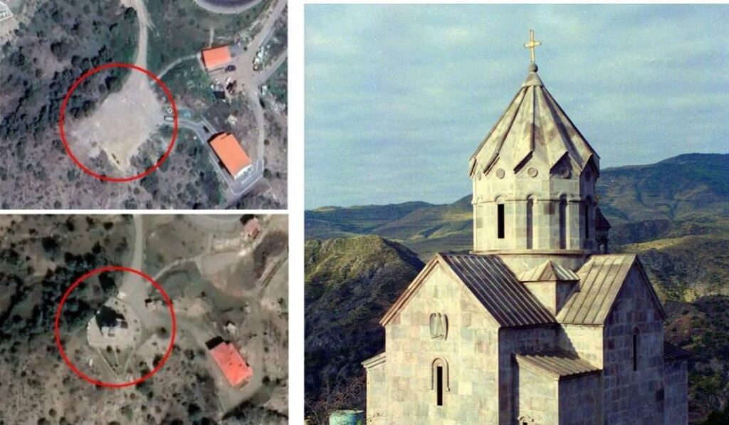 Les dernières photos satellites montrent que le régime azerbaïdjanais, génocidaire et destructeur de la culture arménienne, a complètement détruit l’église de la Sainte Ascension (Sourp Haroutioun) de Berdzor. L’information est rapportée par le directeur de la Fondation de l’Étude de l’architecture arménienne, Raffi Kortoshian qui a écrit à ce sujet sur sa page Facebook.