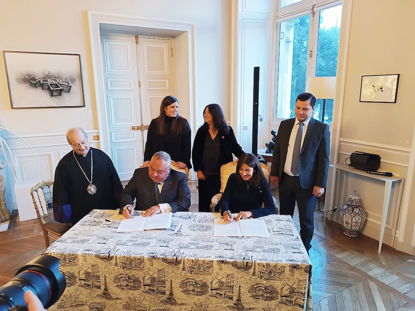 La cérémonie s’est poursuivie par la signature officielle de la convention par Anne Hidalgo et Ara Aharonian, suivie d’une réception.